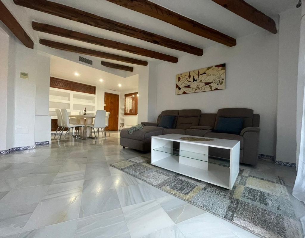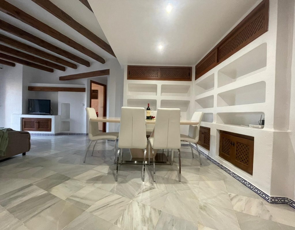 EXCLUSIVO ÁTICO EN LA URBANIZACIÓN DE ALDEA DEL MAR. Estupendo ático de estilo rústico, situado en la prestigiosa zona residencial Aldea del Mar, a sólo unos pasos de la Playa de los Locos en Torrevieja. Esta conocida zona residencial cuenta con zonas ajardinadas. El ático dispone de ascensor. Consta de 94 m2 construidos, distribuidos en un amplio y luminoso salón-comedor totalmente amueblado, con acceso directo a una gran terraza con vistas a las zonas verdes y al mar, cocina equipada y funcional con barra americana, 3 dormitorios, 2 de ellos con armarios empotrados y 2 baños completos. La vivienda se vende amueblada, y dispone de aire acondicionado por conductos. Ideal para disfrutar de espacios luminosos y del sol de la mañana. Además, la plaza de aparcamiento subterráneo está incluida en el precio.