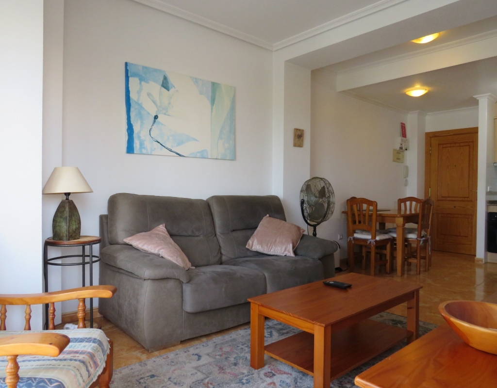 Apartamento de 2 dormitorios y 2 baños en venta con vistas al mar en el pueblo de La Marina, Elche, Alicante en la Costa Blanca Sur.