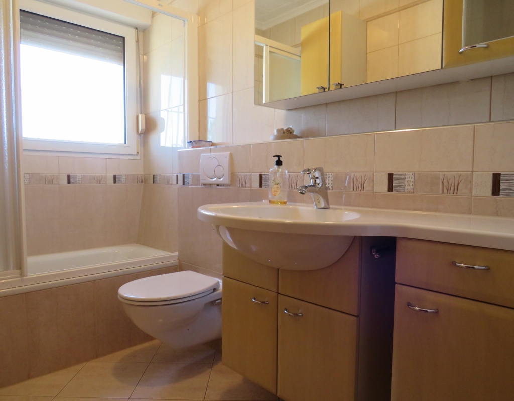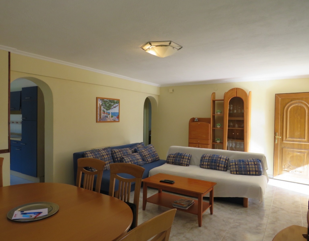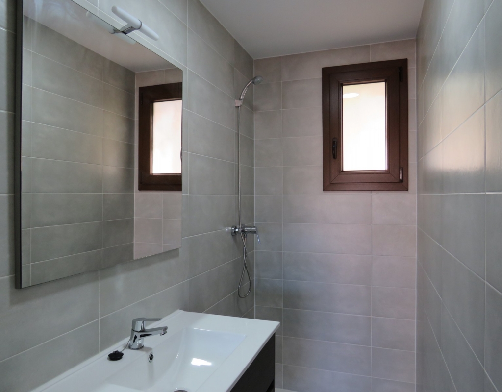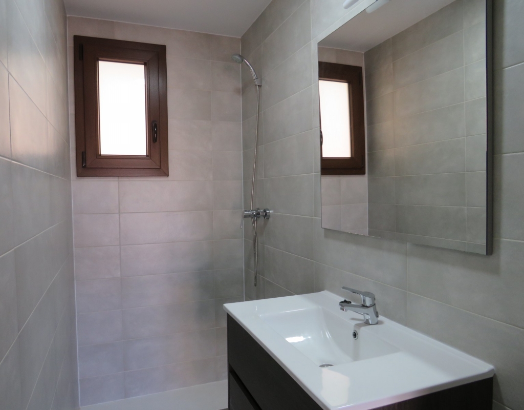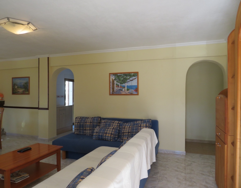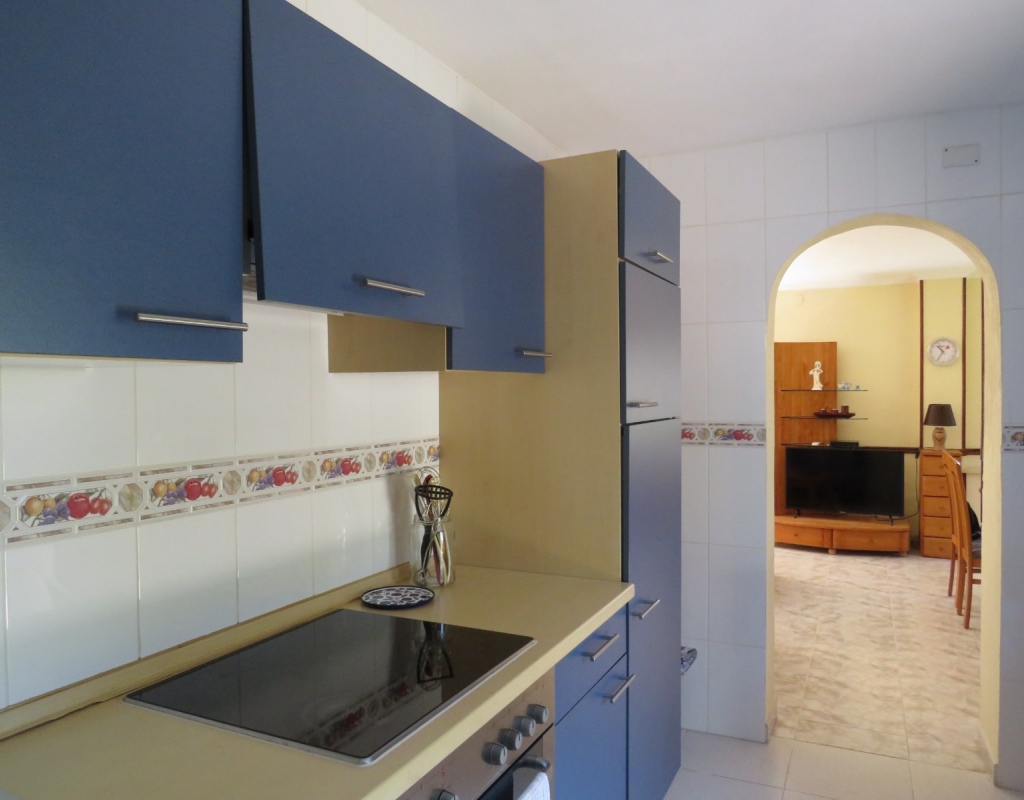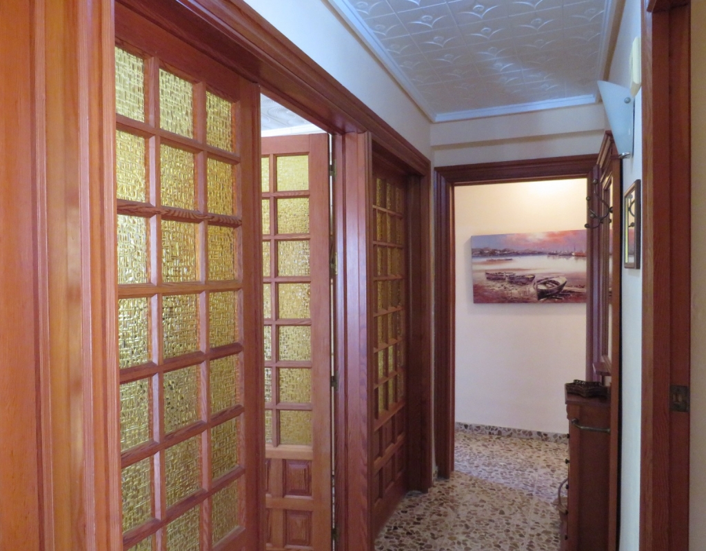 La escalera lateral conduce a la planta superior, donde encontrará un amplio balcón acristalado con vistas al jardín, la piscina y Santa Pola. Aquí también encontrará la entrada a la segunda zona habitable, que consta de un amplio salón con estufa de pellets, una gran cocina, un baño y tres dormitorios. La escalera exterior conduce a un amplio solárium privado con vistas panorámicas al mar. Detrás de la casa hay un gran trastero para bicicletas, etc., y un lavadero que alberga la calefacción central de gasoil. Hay dos apartamentos independientes de un dormitorio y un baño para invitados, y debajo de estos se encuentra un amplio sótano.