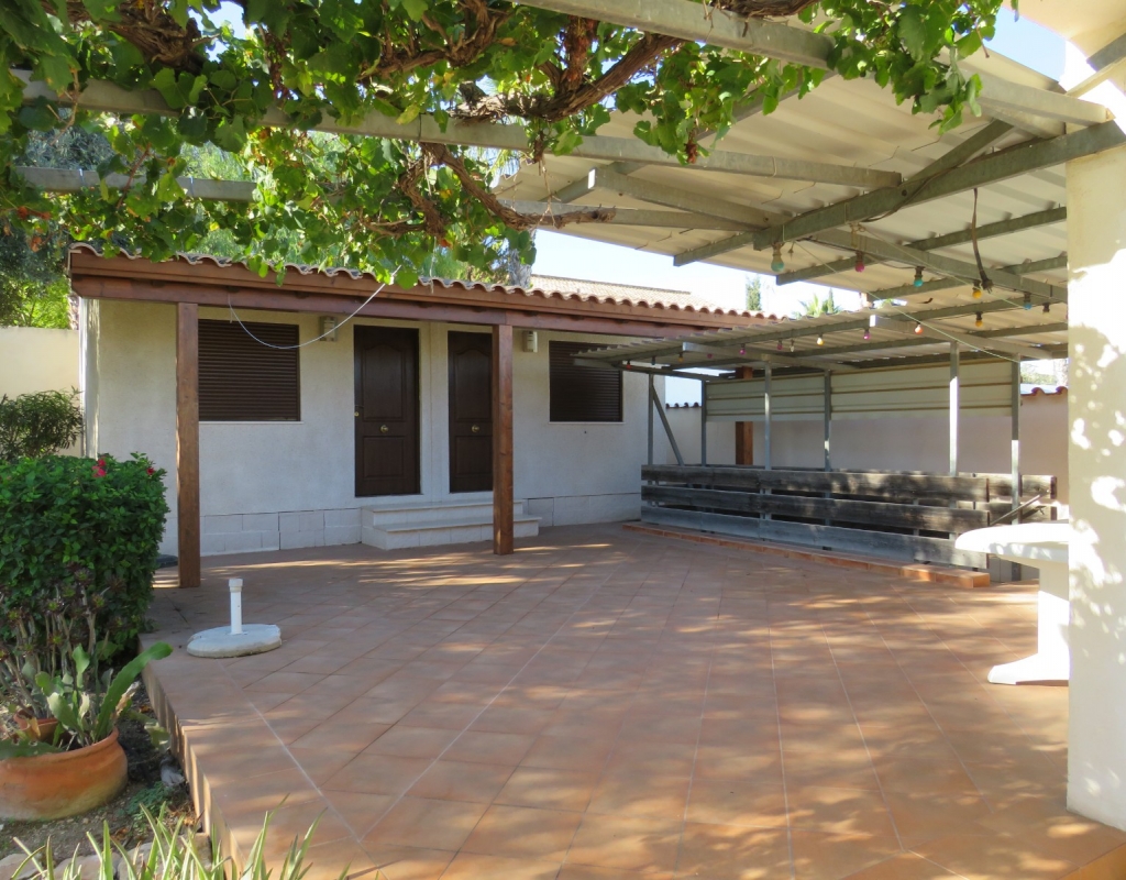 Se vende una amplia villa independiente con orientación este, cerca de la playa y del pueblo de La Marina, Elche, Alicante, en la Costa Blanca Sur. La propiedad cuenta con una superficie construida total de 403 m², que incluye la vivienda, porche, balcón, trastero, piscina, aparcamiento, lavadero, etc., y una parcela de 1460 m² con dos entradas privadas. Al acceder a la parcela, con puerta automática, por la entrada principal frente a la casa, encontrará aparcamiento privado para varios coches. En la fachada, un espacioso porche da a un precioso jardín y zona de piscina, con diferentes tipos de árboles. Al entrar en la vivienda, se accede a un luminoso y amplio salón que comunica con la cocina, la cual tiene acceso al jardín. En esta misma planta se encuentran dos dormitorios, un baño con ducha y acceso a un amplio garaje.
