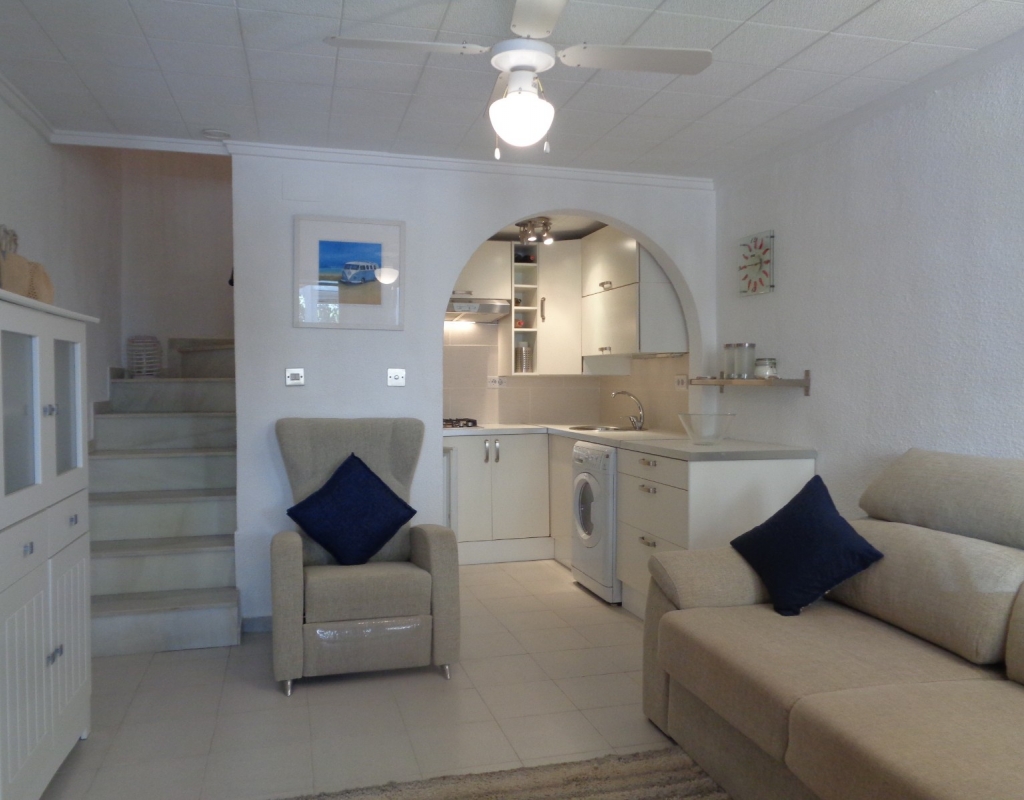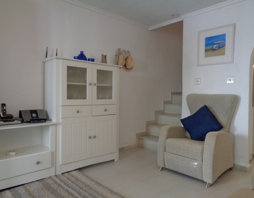 The property is sold fully furnished and includes white goods. It sits just 400 meters from La Marina camping which has something to offer the whole family. Also the village of La Marina is just 2 kilometers away with many shops, bars and restaurants available and more. There is also a regular bus service running north to Alicante and south to Torrevieja. Alicante International Airport is only a 20 minute journey by car.