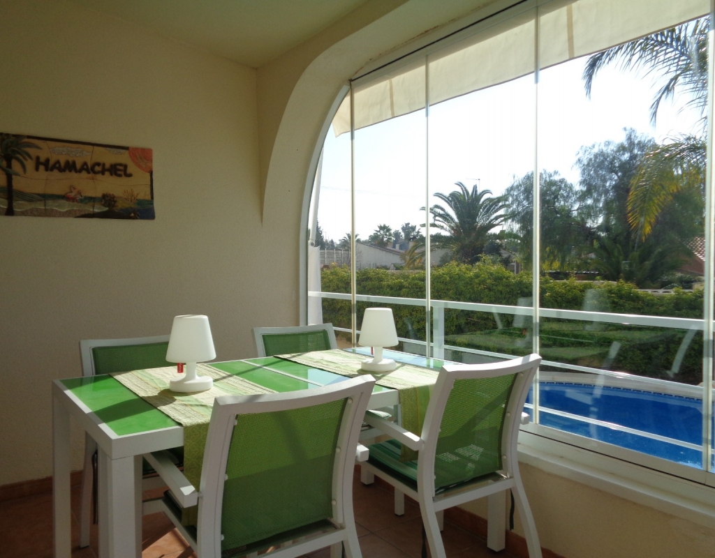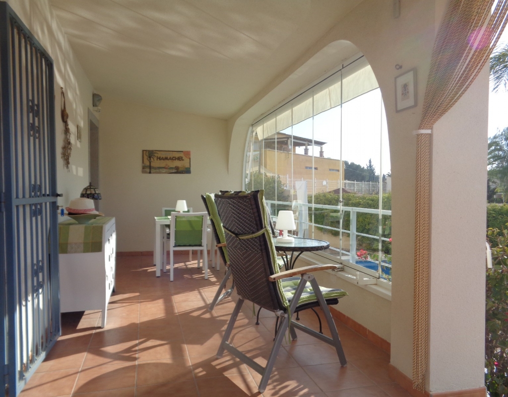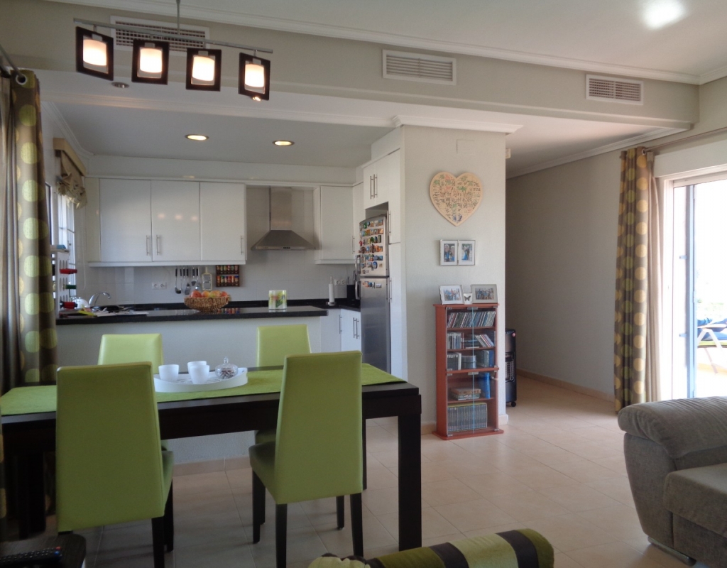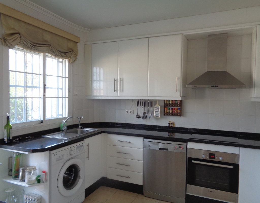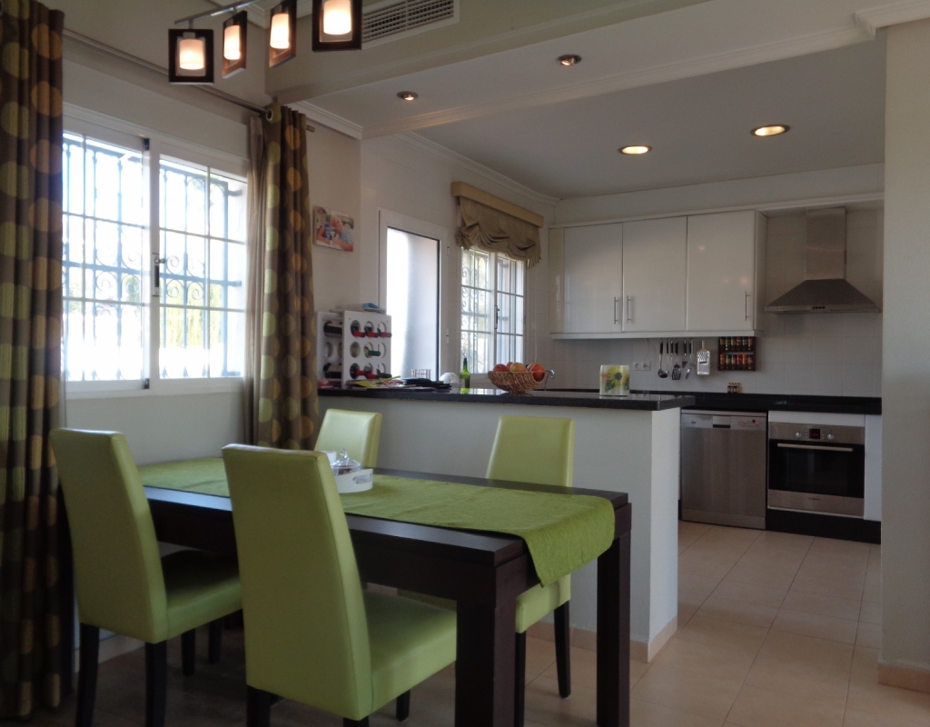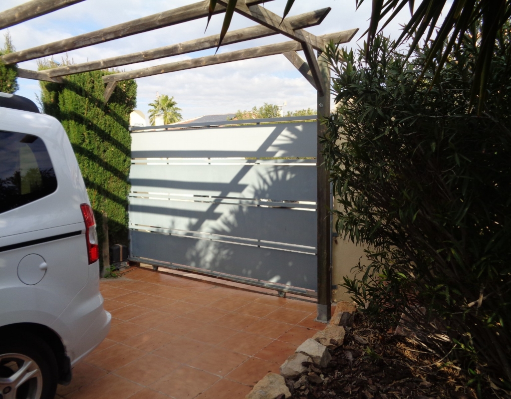 The spacious kitchen is fully equipped with all your mod cons including a dishwasher. You will find a built in barbecue by the 6 x 12 private swimming pool with ample space to relax and take in the sun. There is off street parking with a covered car port and an electric gate to enter and leave. The property is situated on a 600m2 plot where 125m2 is the property.