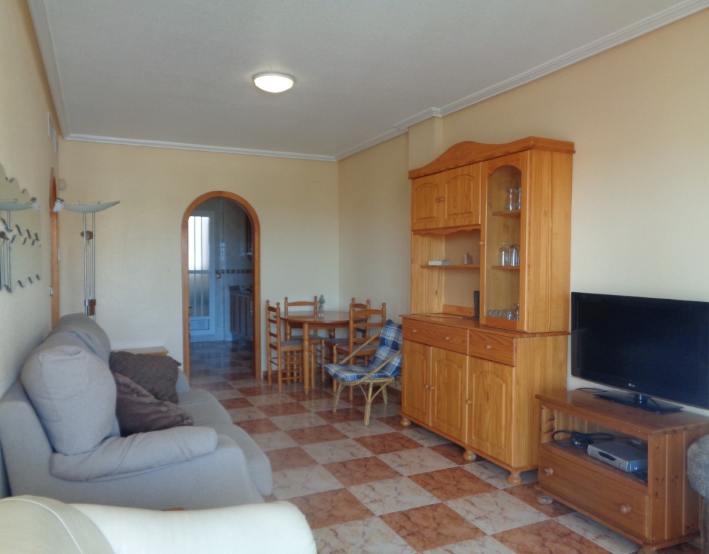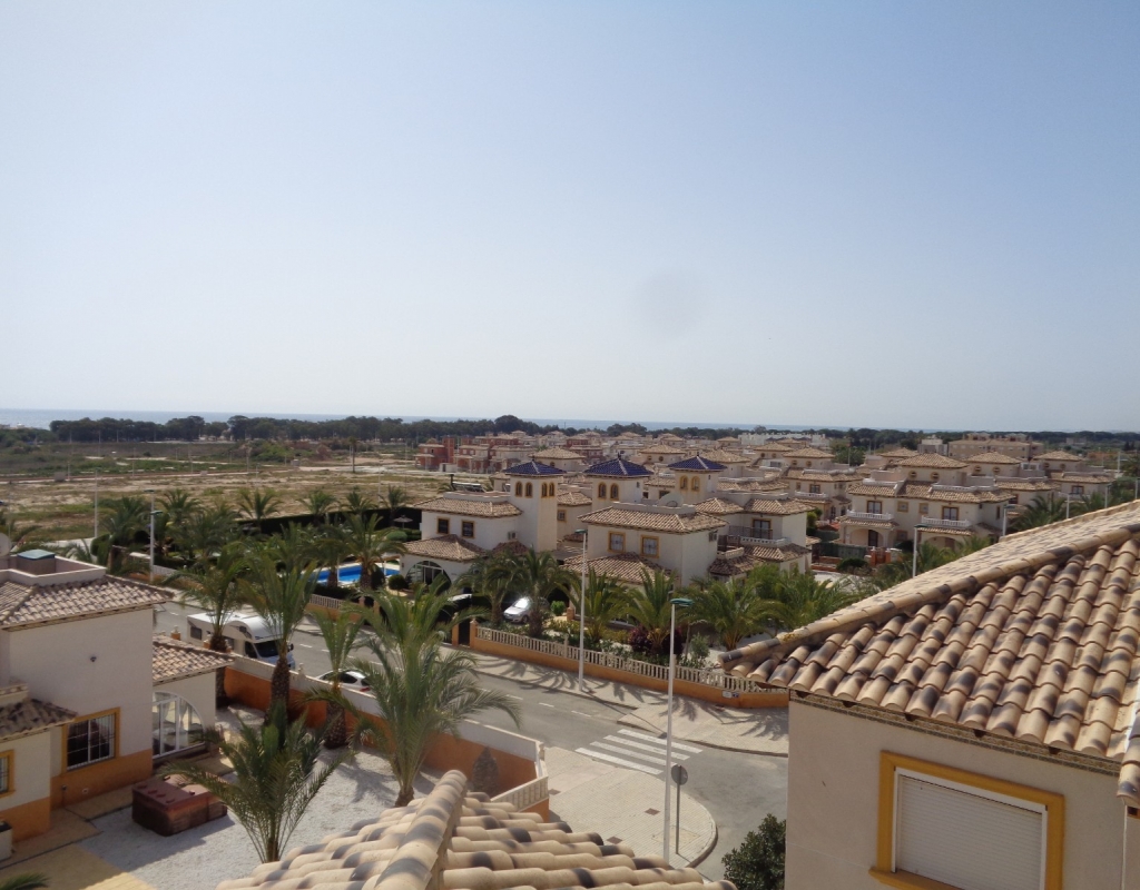 Top floor apartment with lovely sea views and private solarium for sale in El Pinet just 600 metres from the beach.