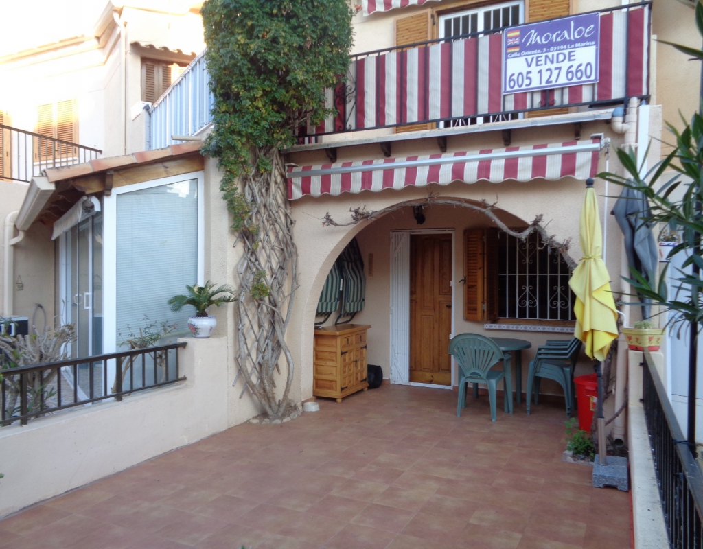 The property is sold furnished and inlcudes white goods. It sits just a five to ten minute walk from the beach and is only three hundred metres from La Marina camping which has a supermarket open 7 days with many more services available. La Marina village is just 2 kilometers away also with may amenities on offer. Alicante International Airport is just a twenty minute journey by car.