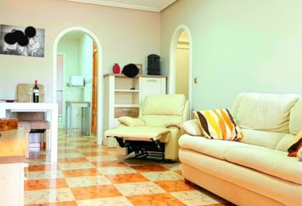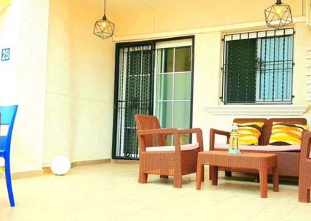Here we have a ground floor apartment for sale in El Pinet, La Marina, Elche, Alicante on the south Costa Blanca. The property has a constructed area of 68 m² in which you will find a living room with a dining area, a semi open plan kitchen which leads to a rear patio, 2 double bedrooms and a family bathroom. At the front of the apartment there is a terrace of around 40 m² and a spacious porch. There are sea views from Sea level across the nature reserve to Santa Pola. The house is sold furnished and includes white goods.