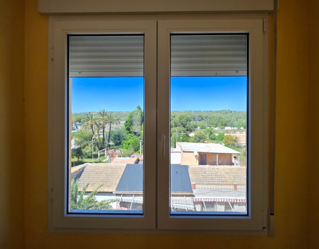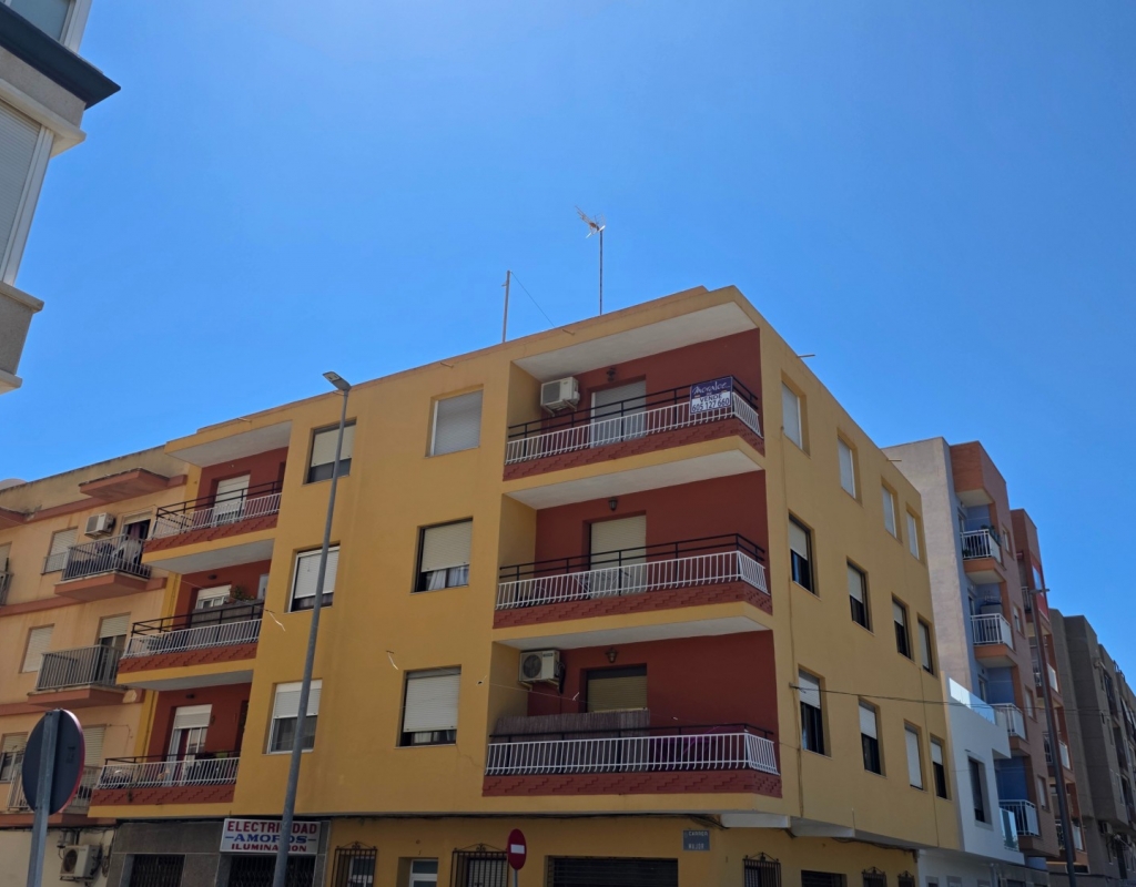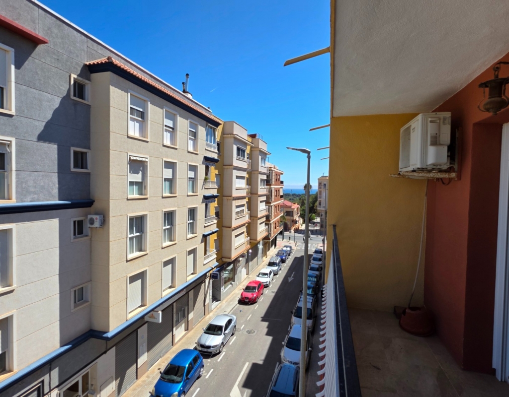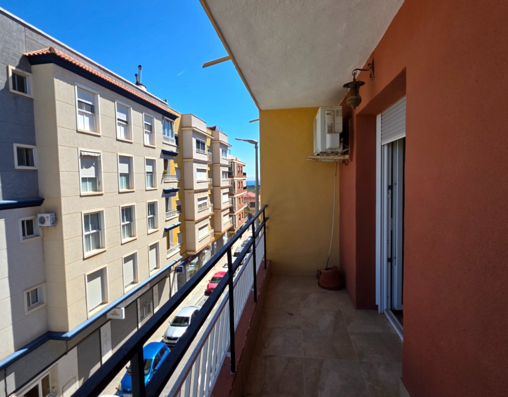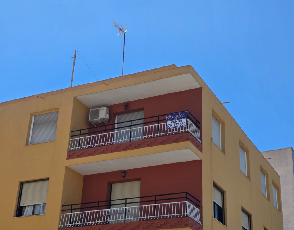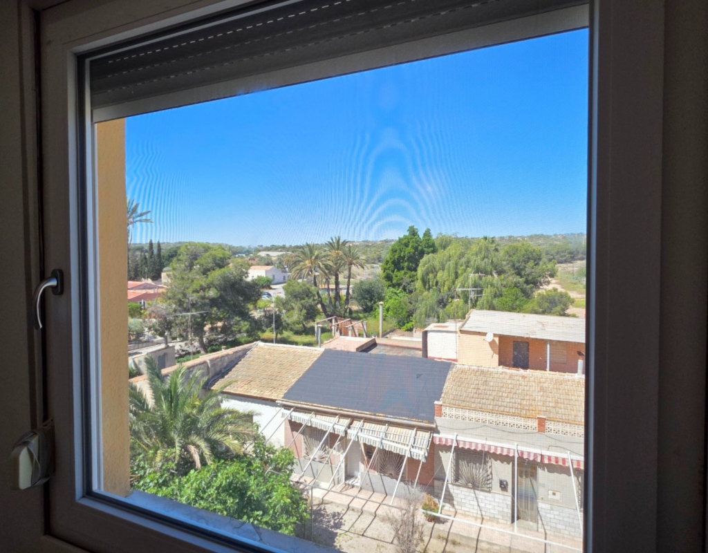 Here we have a spacious top floor apartment for sale in the lovely village of La Marina, Elche, Alicante on the South Costa Blanca. The property has a constructed area of some 84 m² and consists of 3 double bedrooms, a living room with access to a balcony with side sea viees and nice green views, a large independant kitchen with a dining area and finally the family bathroom. all of the windows have been replaced in the apartment with open and tilt climalite wiindows.